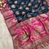 - The saree is complemented by a matching blouse and adorned with intricate coding work along the border, adding a touch of sophistication and elegance to your ensemble.