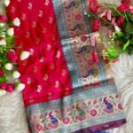 - This Banarasi silk saree features intricate beautiful zari weaving work, adding a vibrant and artistic flair to its overall design.