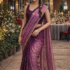 • Delicate stone motifs and a finely embellished border add a touch of sparkle, enhancing the saree’s sophisticated charm.