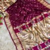 - The saree is complemented by delicate tassels and vibrant detailing, making it ideal for weddings, festive functions, or grand celebrations, blending classic artistry with contemporary style.