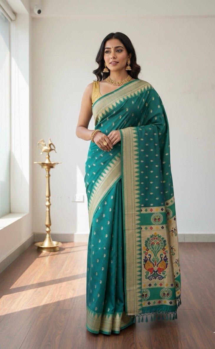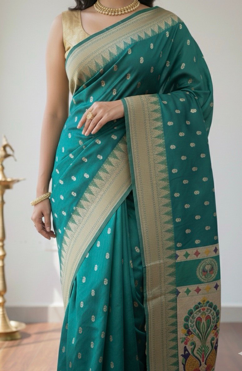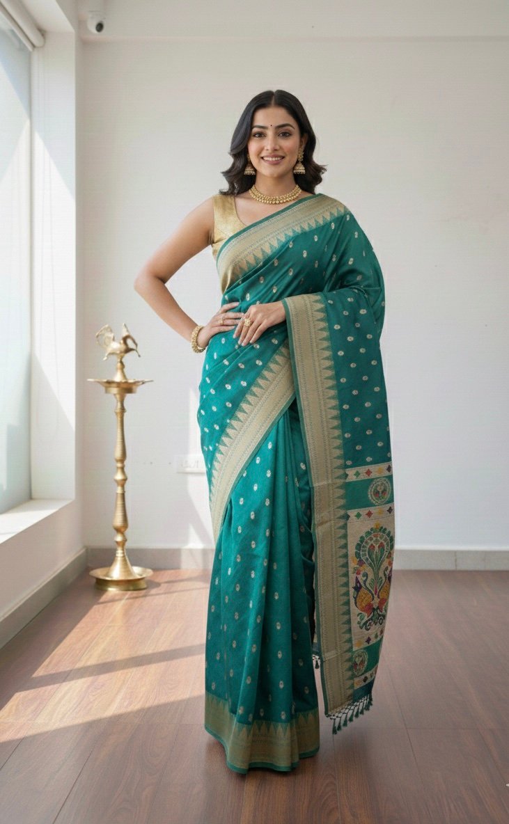 Emerald Peacock Banarasi Art Silk Saree.