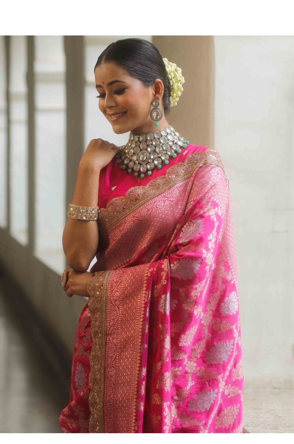 - Complete your look with the included matching blouse, designed to complement the saree perfectly, ensuring a cohesive and stylish appearance for any festive celebration.